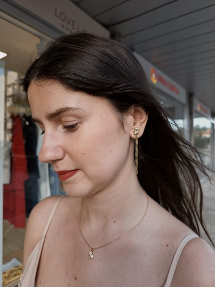 Brinco Longo Flor Dourado Aço Inox